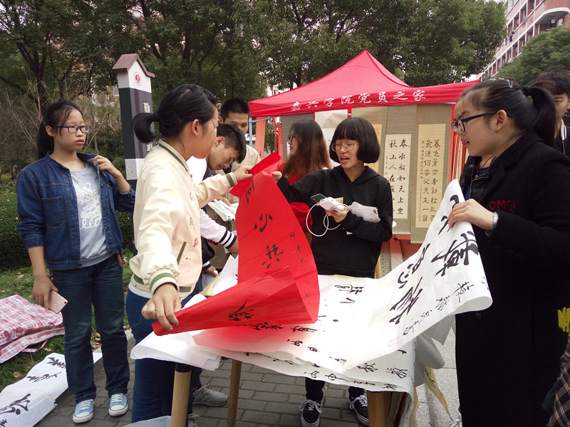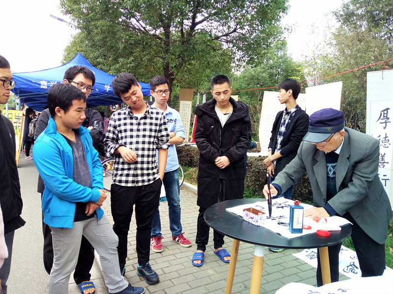 书画协会在梁林校区老食堂门口举办了“韩振良大师书法走进校园”大型活动。
