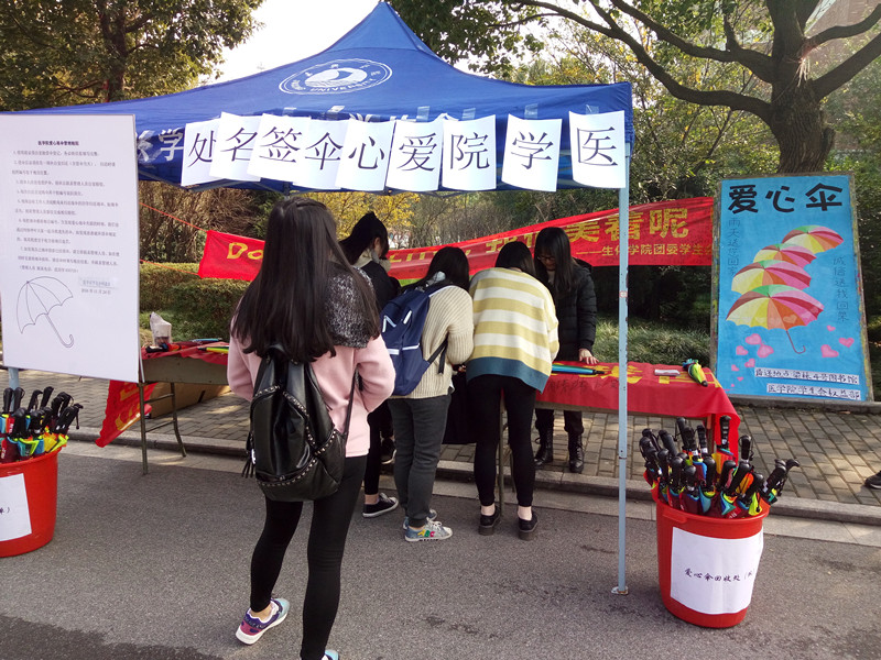 特准备了若干把“爱心伞”,以求减少雨雪天气对全体师生的影响,提供便利的学习、工作和生活环境。