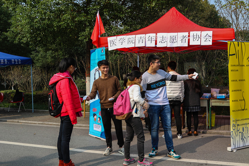 青年志愿者协会在梁林校区老食堂门口和越秀校区笨笨熊广场举办了以“相拥艾人”为主题的防艾活动。