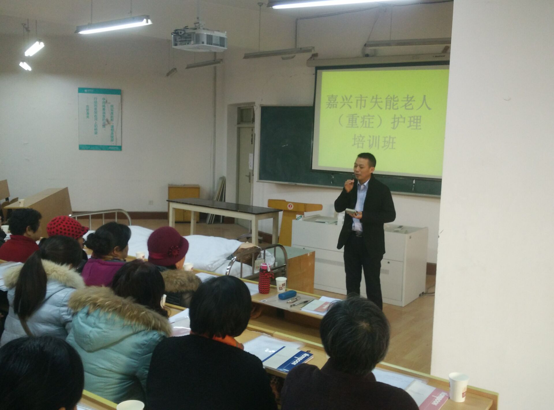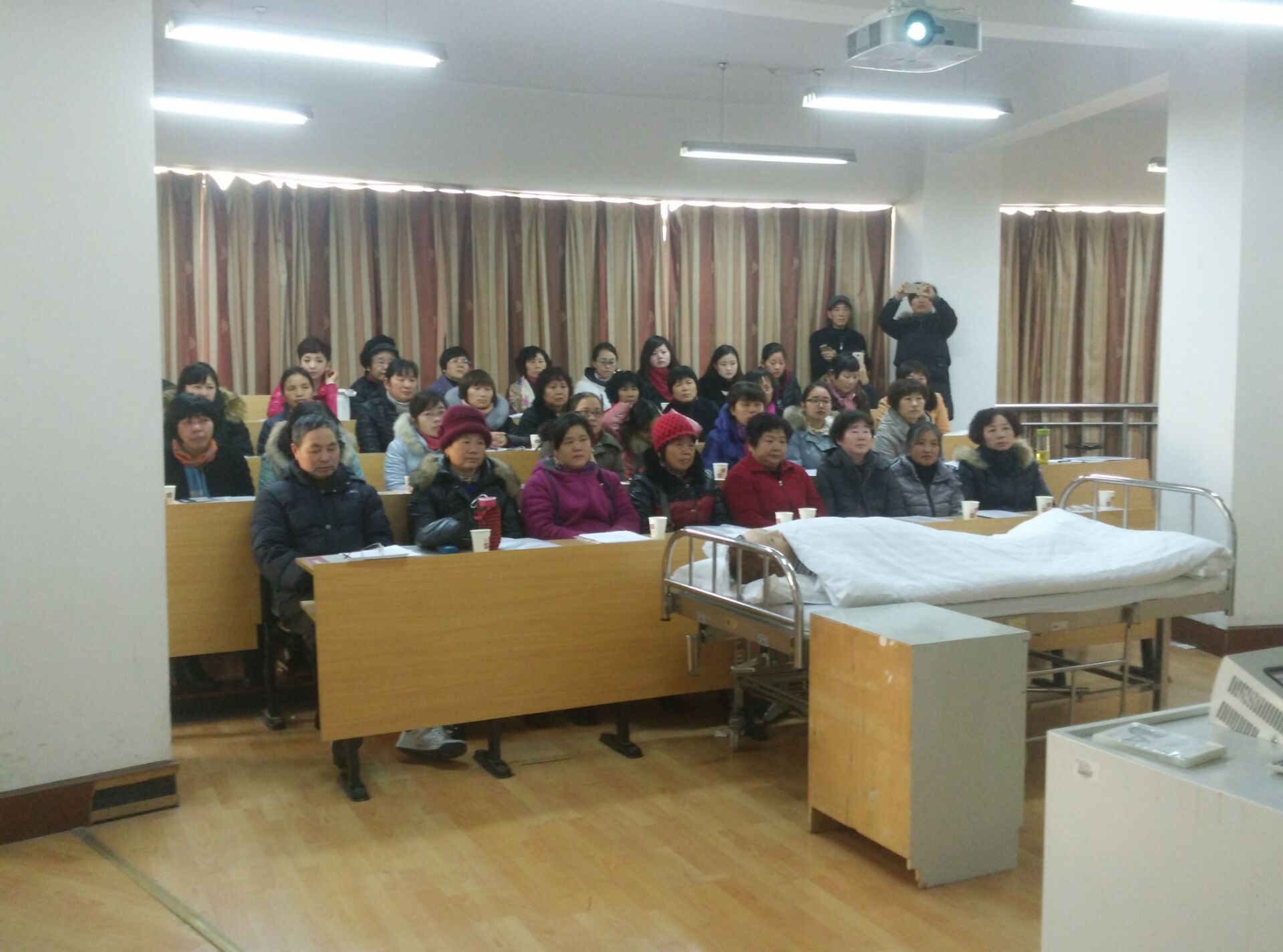 随着人口老龄化的不断加剧,失能老人的家庭越来越多,为更好的服务地方,回报社会,关怀失能老人及其家庭的生活,2016年1月9日,博彩网站推荐 社会服务部在博彩网站推荐 实验中心为嘉兴经济技术开发区的社区干部、失能老人家属举办了失能老人家庭护理培班,受到了当地社区和家庭的热烈欢迎,总共有70名学员参加了培训。培训内容主要有口腔护理、床上洗头、床上擦浴、压疮预防护理、大小便失禁的护理、便秘护理、饮食护理、协助翻身法、卧床病人换单法、脑卒中患者良肢位摆放、上下轮椅法。博彩网站推荐 派出了优秀师资力量,同时提供了实验室给学员进行操作学习,有理论讲解和模拟真人的示教操作演练。学员们学的非常认真。培训结束后,学员们纷纷表示此次培训收获非常大,社会非常需要这方面的培训。
