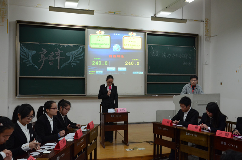 本届辩论赛决赛的主题是“高等教育应该严进宽出还是宽进严出”,对该主题,正反双方都以深刻的论述,充分的事例,深入的剖析阐明了自己的观点,其中的申论、自由辩论都考验了选手们的随机应变能力及反应能力。接下来的观众问答环节更是将比赛推向了高潮,面对观众的问答,选手们各个镇定自如,一一答辩,赢得了在场观众的热烈掌声。最后评委徐涵辉对本次比赛进行了全方位的点评,他指出了正反双方的优缺点,并对现场大一新生提出了积极参加课外活动的期望。