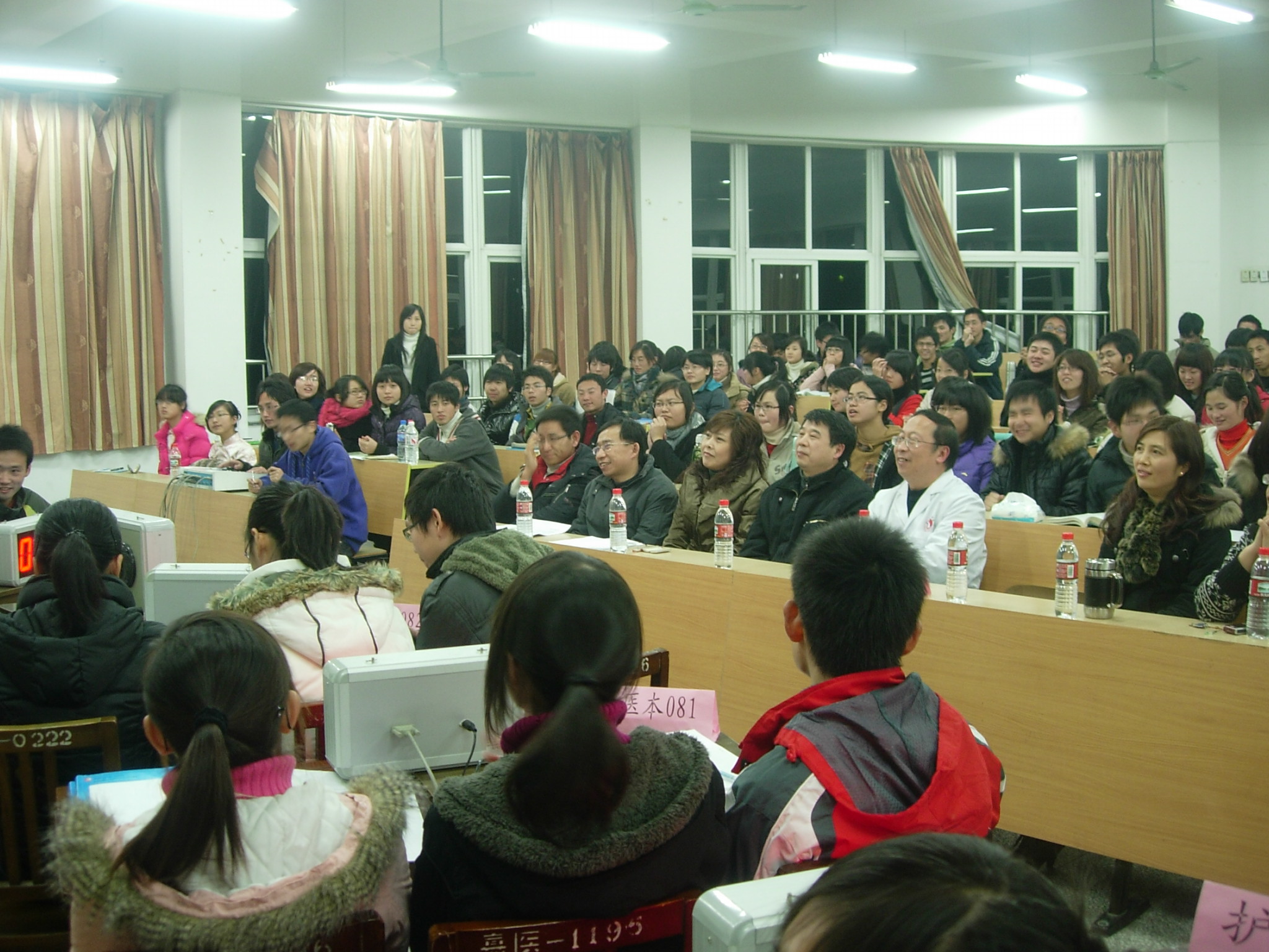 本次以“提高同学学习兴趣,营造良好学习氛围”为目的的知识竞赛在各位同学的积极参与下高潮迭起。尤其是在抢答环节,每组选手都全神贯注,在主持人读完题目后迅速按键抢答。回答的既精彩又幽默,在场观众更是不断发出赞叹声。最后,通过计算各阶段比赛分值,决出了各队的名次,由宋国杰院长、蒋小红老师和董波老师给获胜的前三名颁发了获奖证书和奖品,医本N081班获得总分冠军。宋国杰院长对参赛的各队和全体参加和观看竞赛的同学们给予了很高的评价、鼓励和肯定,指出了在学习医学基础课程中如何建立分析和思维方法的重要性和途径并举例说明。并激励大家再接再厉,争取在期末考试中努力获取生理学和生物化学的好成绩。两位同学勇敢接受挑战,表示要在期末考试中两门课程都获得90分,同学们对此报以热烈掌声。最后,竞赛在激动和昂扬的气氛中圆满结束。