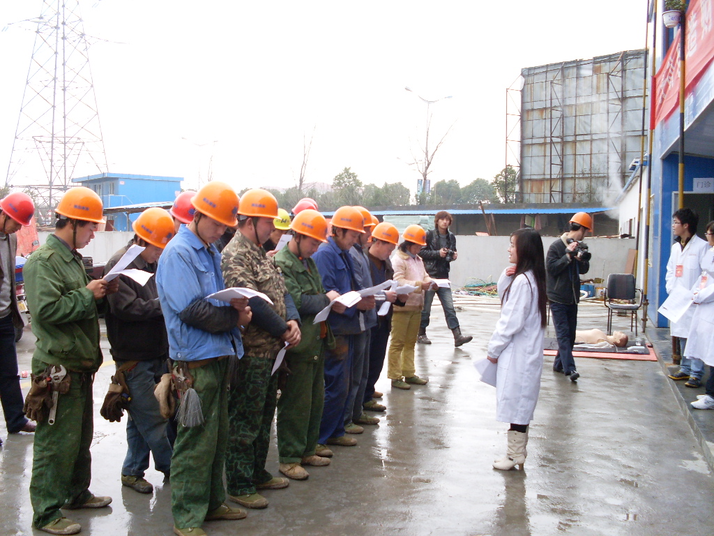 青年志愿者主要针对基建民工的实际情况,开展了基本医疗检查,如做心电图,测量血压与脉搏,测量视力、色觉等;同时通过现场人体模型为他们演示心肺复苏、人工呼吸等急救措施;另外就现场组织了相关医疗知识的学习,发放工地常见紧急情况的急救资料(如高压触电、高空坠落等急救护理)。此次医疗活动服务人数达70余人,共发放宣传资料近200份。